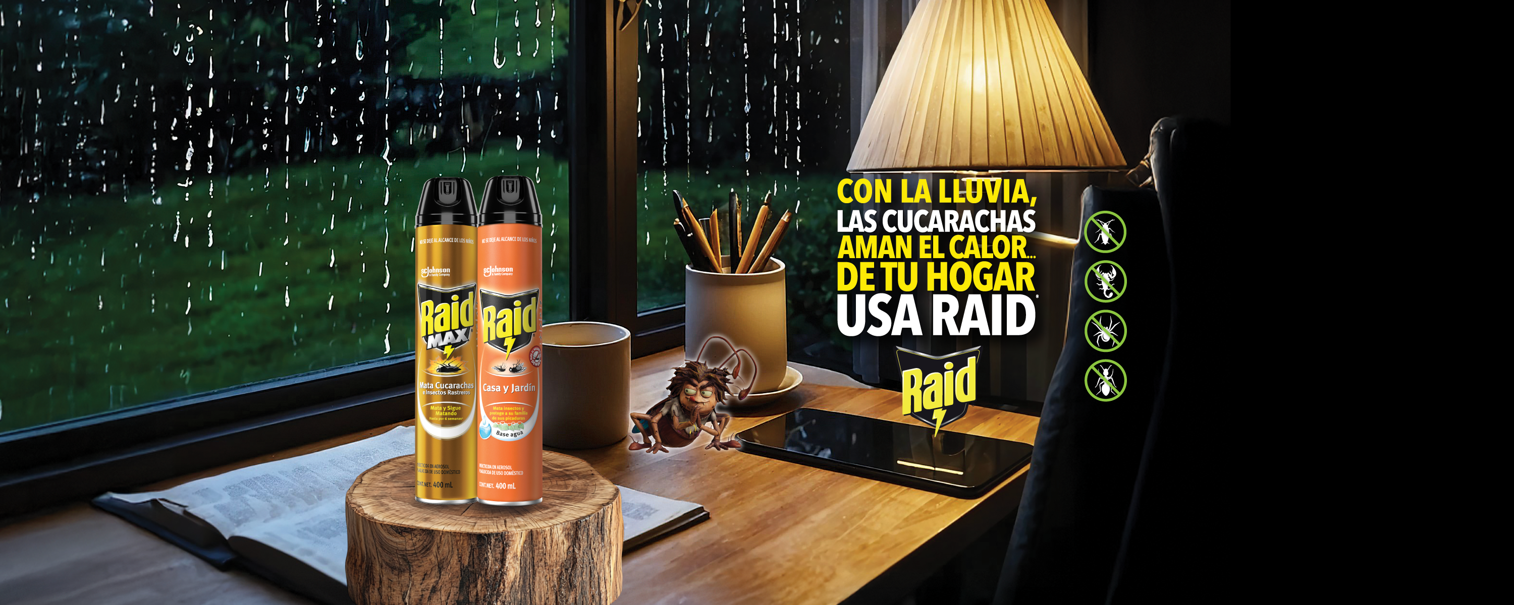 Raid Max® Insecticida en Aerosol, Mata Cucarachas e Insectos Rastreros, Plaguicida de Uso Domestico, Aroma Eucalipto, 430 mL